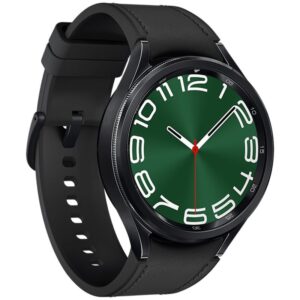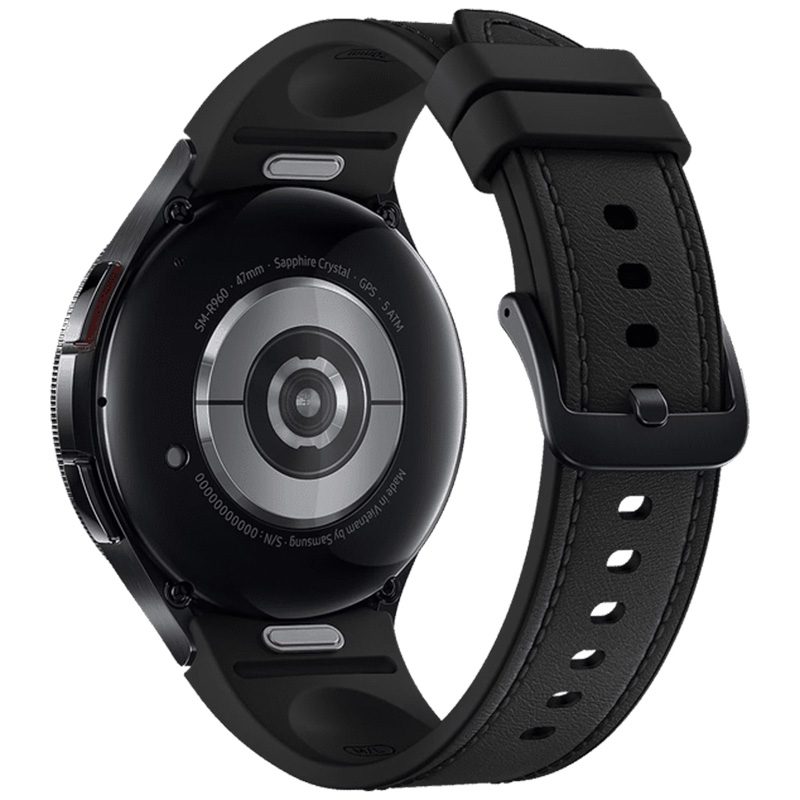 ساعت هوشمند سامسونگ مدل Galaxy Watch 6 Classic R960 با اندازه 47 میلیمتر، ترکیبی از طراحی کلاسیک و فناوری پیشرفته را ارائه می دهد. این ساعت دارای قاب چرخان باریک است که امکان پیمایش روان و آسان را فراهم می کند. صفحه نمایش بزرگ تر شده و با شیشه کریستال یاقوت کبود محافظت می شود که دوام بالایی را تضمین می کند.